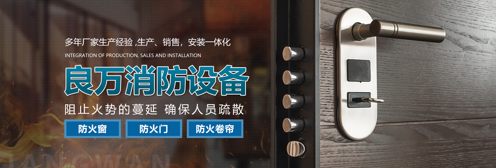 關(guān)于我們合肥良萬消防設備有限公司位于合肥市包河工業(yè)園,生產(chǎn)銷售安裝:防火門、防火卷簾門、防火窗等消防安全產(chǎn)品。公司具有研發(fā)、設計、生產(chǎn)、銷售、及安裝服務的綜合配套能力。合肥良萬消防設備有限公司技術(shù)力量強,設備齊全,產(chǎn)品不斷創(chuàng)新,以信譽立業(yè),客戶滿意是我們永無止境的追求。我們在保證產(chǎn)品質(zhì)量的同時,也十分注重售后服務,保證消防安全產(chǎn)品的正常運行。公司始終堅持誠信為本的企業(yè)宗旨,真誠希望與社會各界新老客戶精誠合作,良萬愿與您攜手共創(chuàng)輝煌!